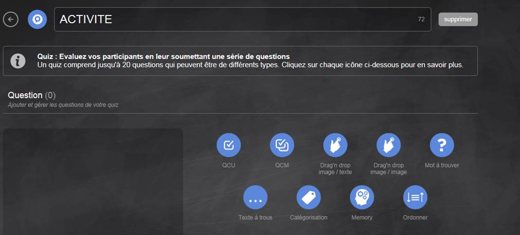 Plus de 9 typologies de Quiz, Sondage, Aventure, Brainstrom, Question live…