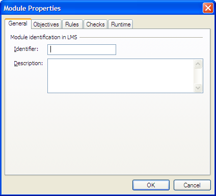 How to publish course Module Runtime Settings. Before publishing your Course it is necessary to specify runtime settings for each Module in the Course. Select Module -> Runtime Settings sub-menu. “Module Properties” dialog window opens up (Fig.1). Identifier is a short Module id, which will be used as Module reference code in the Learning Management System. Description – brief informal description of the Module.